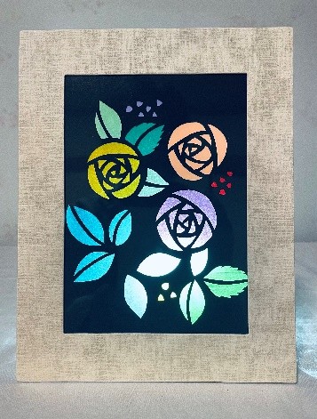 切り絵を特殊なカラーフィルムを使って彩色し、作品を作り上げるシルエットアート。