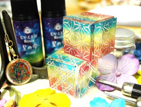 今流行中のキューブとレジンでアクセサリーを制作します。