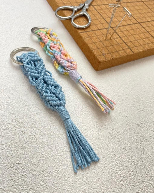 あらゆる結び方を駆使して作品を作る「マクラメ編み」でキーリングを作ります。今回はマクラメはじめてさんでも簡単な結び方のみですのでお気軽にご参加ください。※当日に色を選んでいただけますが、ご希望に添えないことがありますので、ご了承ください。