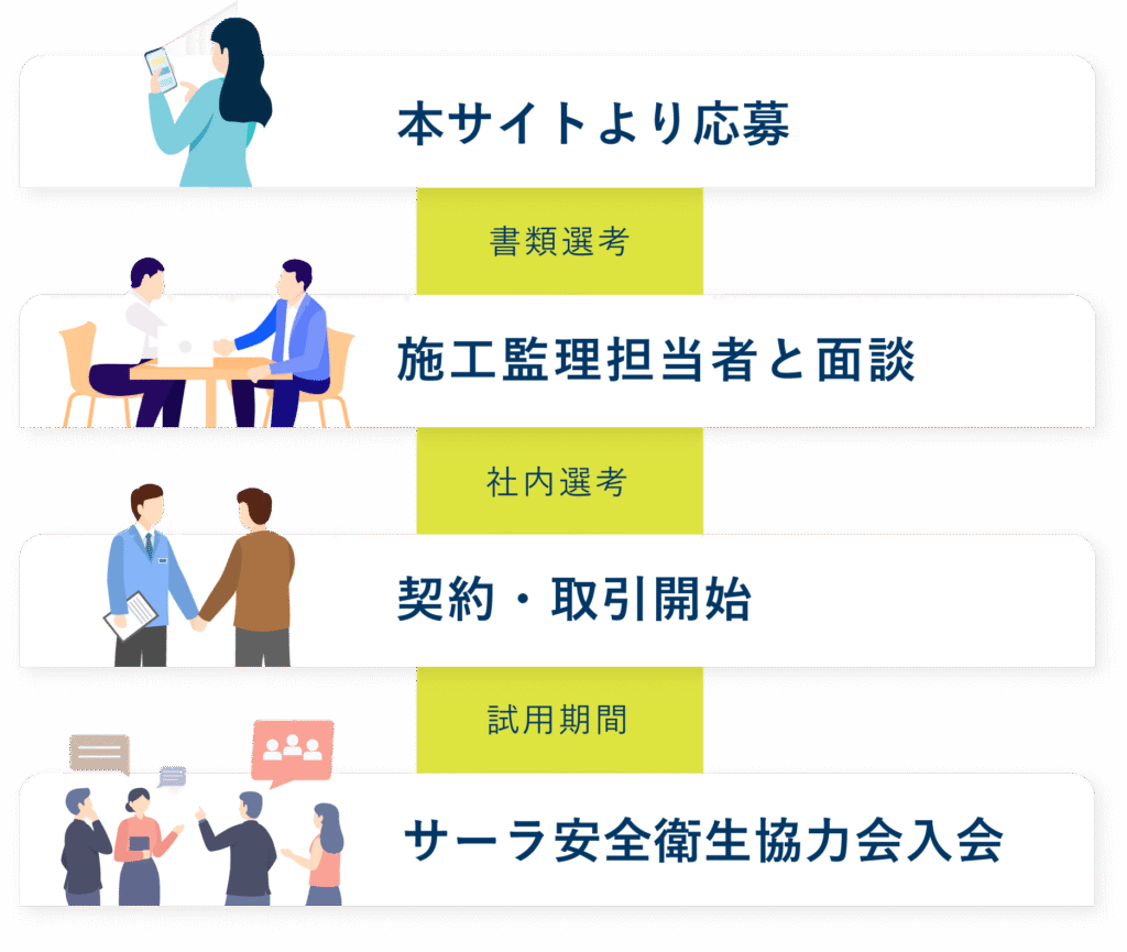 まずは面談でお話しさせていただき、その後は簡単な工事から始めていきます。一緒に取り組む中で、お互いに安心して長くお付き合いできる関係を築いていきたいと考えております。