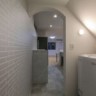 キッチン横のアーチ垂れ壁は洗濯機スペース→脱衣室へ続きます。