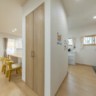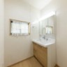 脱衣室と洗面所を分けたことで、洗面所で身支度をしているときも脱衣所で洗濯物をすることができるので朝の忙しい時間を効率的に活用できそうです。小窓に目隠しルーバーをつけることでプライバシーを守ります。
