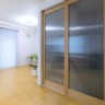 階段へと繋がる建具は安全性を考え、軽く割れにくく、断熱性がある(中空層のある素材)