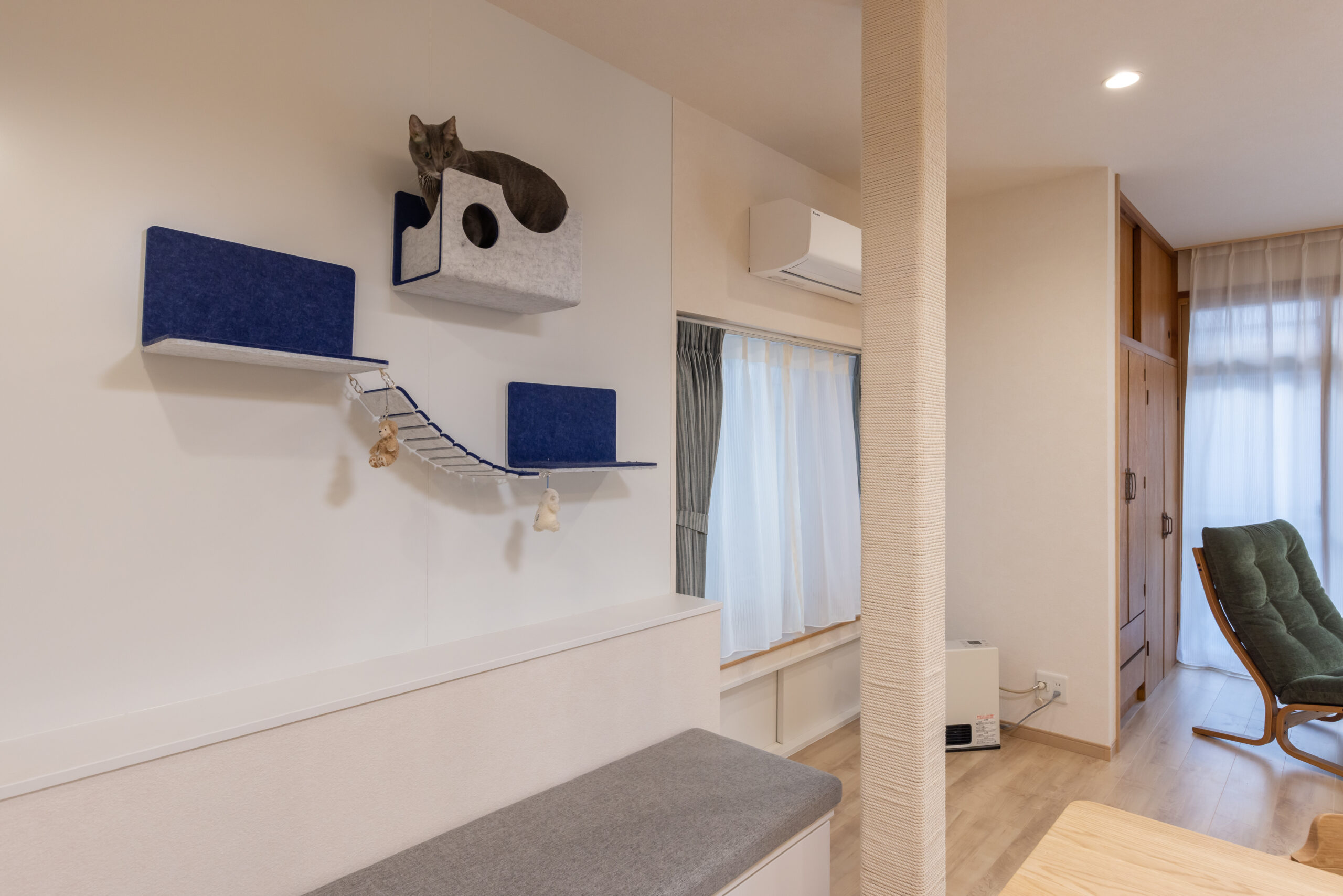 構造上抜けない柱はロープを巻いて、猫ちゃんの爪とぎも出来るようにしました。