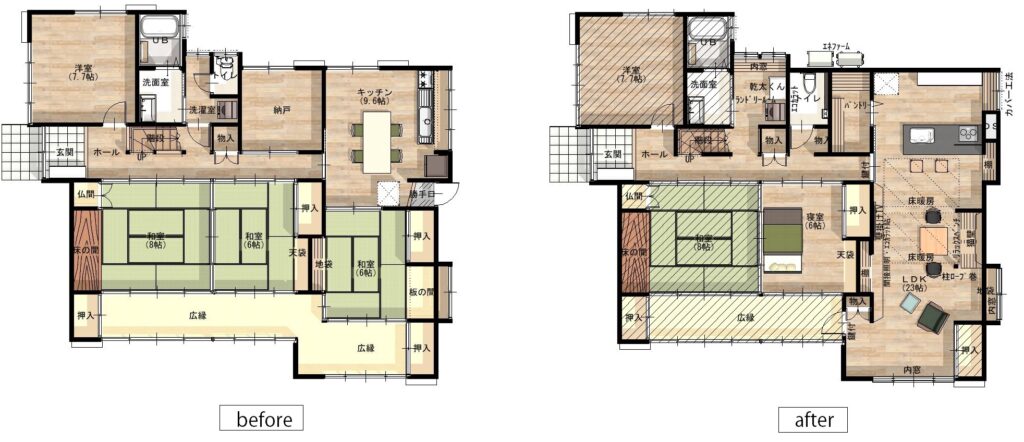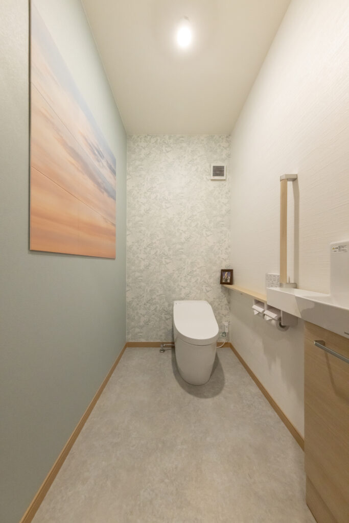 トイレは位置を変え、ゆとりあるトイレにしました。